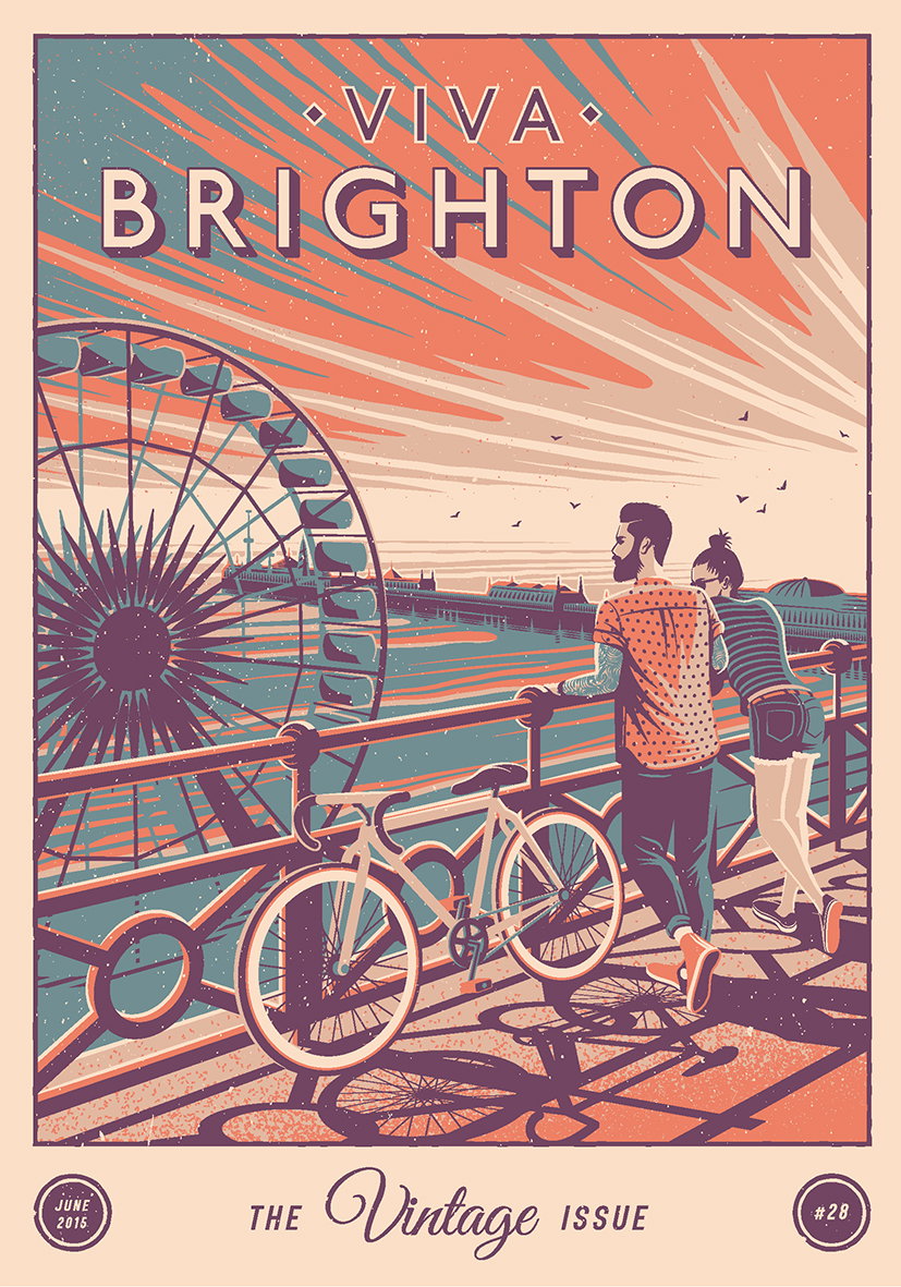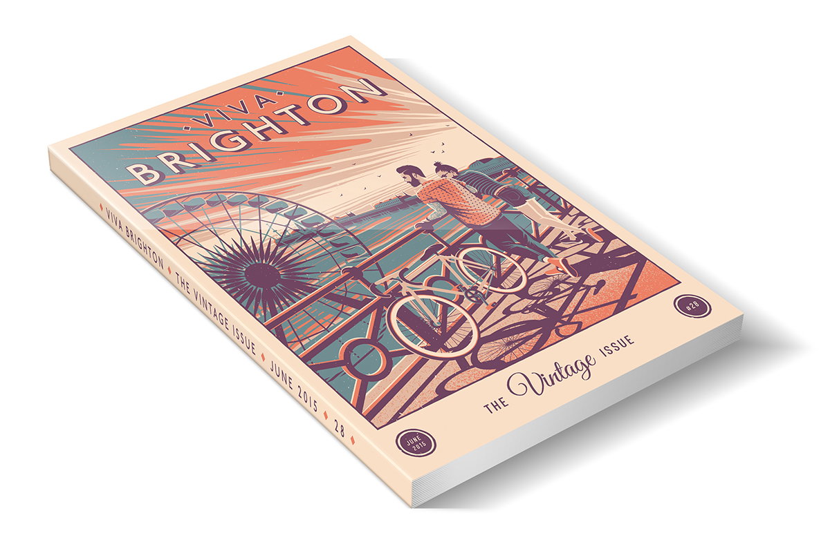 Every issue, the editors at Viva commission a local artist to design the cover based on the over-riding theme of the month – in my case, the theme being “Vintage”. I met with the guys and, amazingly, both myself and the editors stumbled upon a similar direction; a modern twist on the vintage travel poster series from the 1950’s. These were produced by the national rail service to publicise the tourist towns and cities across the British Isles. We both felt the bold, block colours and vintage sensibilities of this design style suited me down to the ground.